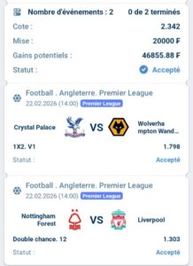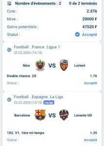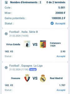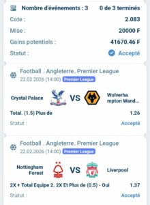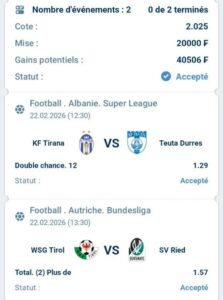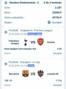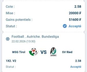 Prono : 2X Et Total 2 plus de (0,5) buts