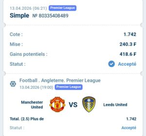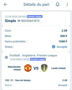 Match 1 : Manchester United vs Leeds United (Premier League – Journée 32)