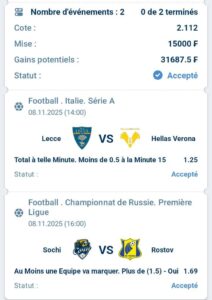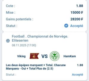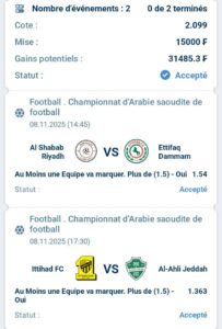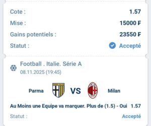 Pari: Au Moins une Equipe va marquer: Plus de (1.5) -Oui