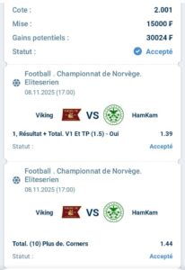 Prono : Les deux équipes marquent + Total plus de (2,5) buts