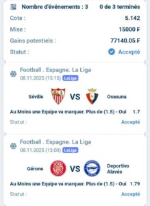 Prono : Au moins une équipe va marquer plus de 1.5 buts pour le compte des 3 matchs Oui