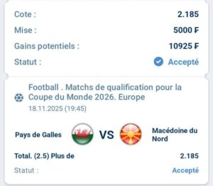 Match :Pays de Galles vs Macédoine du nord
