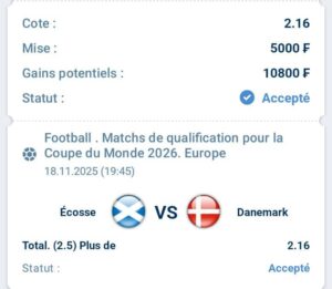 Match : Ecosse vs Danemark