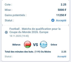 Pari : Total des minutes de buts (119) ou moins