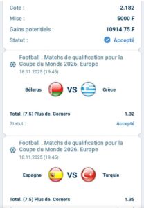 Prono : Total corners plus de (7,5)