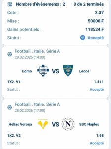 Prono : Victoire ou Nul de Côme (Double Chance 1X)