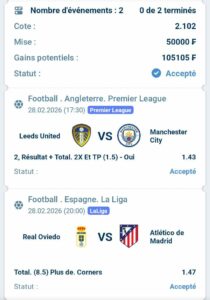 Prono : 2X Et Total plus de (1,5) buts