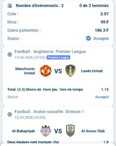Match 1 : Manchester United vs Leeds United (Premier League – Journée 32)