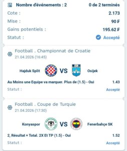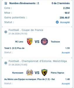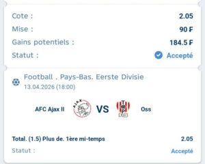 Prono : Plus de 1,5 buts (2 buts dans le match)