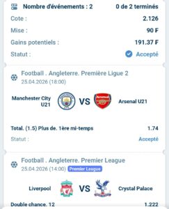 Match 2 : Manchester City vs Southampton (FA Cup – Demi-finale)