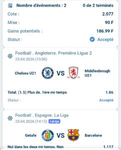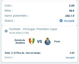 Prono:plus de 1,5 en première mi-temps