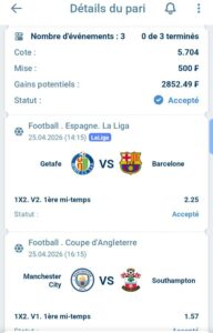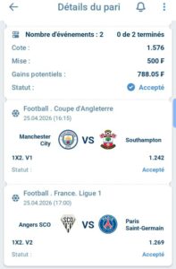 Match 1 : Manchester City vs Southampton (FA Cup – Demi-finale)