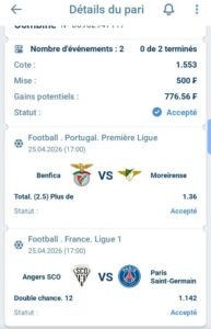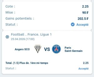 Prono : Résultat final sans match nul (Victoire PSG ou Angers)