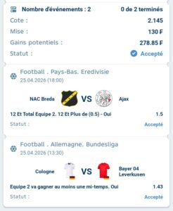Prono : Leverkusen gagne au moin une mi temps