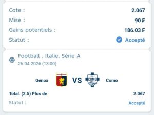 Prono :Au moins une équipe marque plus de 1, 5 buts